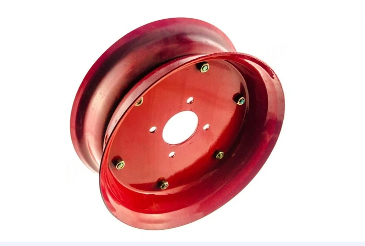 Диск виготовлений із міцного металу, що забезпечує довговічність та стійкість до навантажень під час роботи мотоблока. Підходить для встановлення на колеса 6.00-12 та 5.00-12.